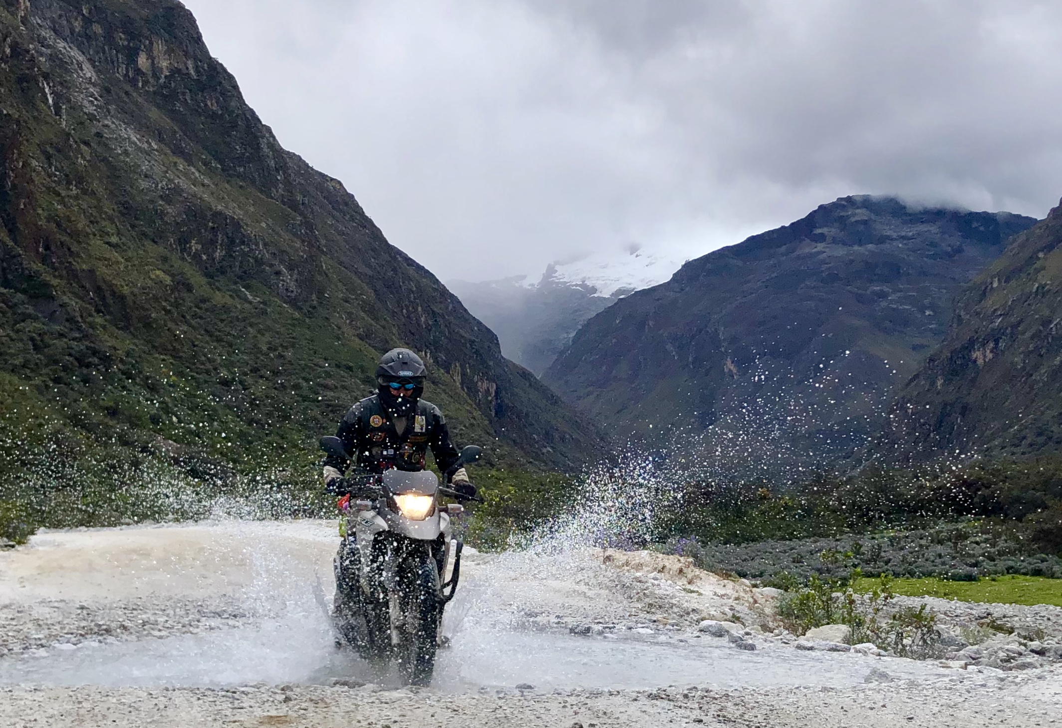Saímos de Yanama com destino a Yungay dentro do Parque Huascarán. Mais um dia fora de estrada atravessando o parque, paisagens deslumbrantes, quedas de água alimentadas pelos picos nevados que ladeiam a cada descida e cada subida, os troços têm muita pedra e os habituais ganchos a 180º, em tantas andanças o Jeep acabou por chegar ao sopé da montanha com um furo, que tivemos de resolver rapidamente com a ajuda dos companheiros que, na ausência do nosso parceiro de expedições, o Paulinho, tiveram de alinhar o mano Helder, Diogo e Pedro.
